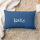 coussin Katie, nom de style monogramme personnalisé en blanc sur Bleu Classique, pour violet, vert, rouge, rose, noir, orange, jaune, marron, gris ou toute autre couleur, cliquez sur l'onglet "Customiser ça". Le nom Katie dans un script moderne sur un oreiller à jetons de coton ou de polyester de haute qualité. Fabriqué aux États-Unis, lavable à la machine, insérer inclus.