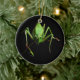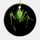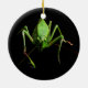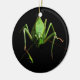 Diese Feiertagsverzierung kennzeichnet ein lebhaftes grünes katydid. Katydids sind zu den großen Insekten mittelgroß. Sie sind normalerweise, manchmal mit braunen Markierungen grün und werden getarnt, um mit dem Blätter zu mischen, das sie an füttern. Ihre sehr langen Antennen unterscheiden sie von den Heuschrecken. Gesehen herauf nahes, scheinen sie, Außerirdische vom Weltraum zu sein! Dieses ist sicher, die Gespräche zu fördern, die von Ihrem Weihnachtsbaum oder überall im Haus hängen.
