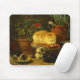 Mouse Pad mit Henriëtte Ronner-Knip Ölgemälde Kittens at Play (1821-1909). Eine Mutterkatze schaut an, während ihre vier Kätzchen auf einem Stuhl, einer Pflanze und einer Essschale spielen. Ein perfektes Geschenk für Katzenliebhaber und Romantiker.