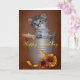 Eine Geburtstagskarte mit einem Foto eines Tabbykätzchens mit Herbstfarben