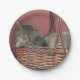 Auf dieser Papiertafel befindet sich ein hübsches Kätzchen, das in einem Korb schläft. Ideal für Party!