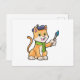 Katze als Maler mit Pinsel und Karpfen Postkarte