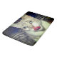Diese Badmatte hat eine niedliche Katze auf sich abgebildet.