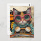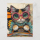 Eine bezaubernde Katzenfee mit Schmetterlingsflügeln trägt eine übergroße Polka-Dotbrille und treibt eine niedliche Mischmediensammlung