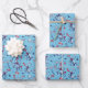 Katze im Hut | Blaues Muster Geschenkpapier Set