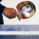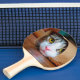 Katze in braunem Papier verpackt Tischtennis Schläger