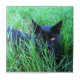 Schwarze Katze im grünen Gras… muss sein wartete eine Maus, um vorbei zu kommen.