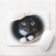 Schwarzweiss-Katze, die in einer Papiertüte spielt