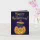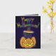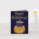 Diese Karte zeigt mein digitales Kunstwerk, das eine niedliche, spukhafte Katze darstellt, die oben aus einer Jack-o'-Laterne herausguckt, vor einem dunklen Hintergrund mit stilisierten Buchstaben, die "Happy Halloween" buchstabieren! Du kannst jedem, der Halloween feiert, eine Kopie dieser Sonderkarte geben!