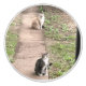 Ein Knöpfchen mit Keramik und einem Foto Katzen.
