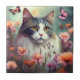 Katze mit Blume und Schmetterlingen Kat 701 Fliese