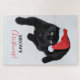 Schwarze Katze mit der roten Weihnachtsmannmütze