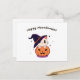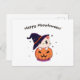 Katze mit Hexenhut zu Halloween Jack-O-Lantern Postkarte