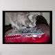 Katze mit Red Electric Gitarrenposter