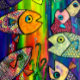 Katze mit Regenbogendecke Karte
