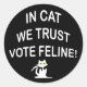Katze mit weißem Text abstimmen Runder Aufkleber