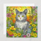 Hübsche, farbenfrohe Katze und Blume gelbe Blumenkunst.