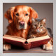 Katze und Hund lesen ein Buch Poster