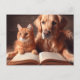 Katze und Hund lesen ein Buch Postkarte
