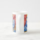 China-Tasse mit Louis Wains Tiermalerei Cat and Her Kittens (1860-1939). Eine anthropomorphisierte blaue Mutterkatze hat eines ihrer blauen Kätzchen. Zwei weitere Kätzchen schlafen in einem Korb. Ein wunderbares Geschenk für Katzenliebhaber und englische Kunst.