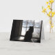 Große Karte mit dem Bild einer schwarzen Katze, die aus dem Fenster auf eine sehr schneebedeckte Szene in Delaware Landkreis PA schaut