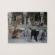 Neun Zucht der Katzen sitzt auf den Schritten und dem Portal außerhalb eines alten Palastes. Jede Katze inszeniert eine andere Pose, eine Position oder eine Tätigkeit.