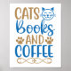 Katzen, Bücher und Kaffeeposter Poster