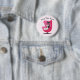 Dieser runde Knopf im hinteren Button ist weiß mit kräftigen rosa Punkten und zwei Katzen mit hübschen Augen, schwarz mit grünen Augen und weiß mit gelben Augen, sitzend in einem rosa Stuhl aus der Mitte des Jahrhunderts. Passen Sie Ihren Text mit der Vorlage an.