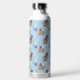 Katzen in Kiste und Milchfallen auf blau Trinkflasche