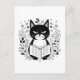Katze liest Buch Postkarte. Niedliche Katze liest einen Buchillustrierungsdruck. Schwarz-Weiß-Katze mit Buch. Katze und Pflanze ästhetische kleine Drucke. Katzen und Bücher lieben Geschenkidee.