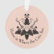 Ein Grafikmotiv mit einer Katze in entspannter Pose, umgeben von Blätter und Blume in schwarzer Silhouette, schmückt dieses Ornament und lässt sich leicht anpassen.