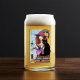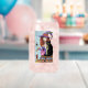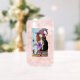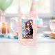 Eine niedliche rote Haare mit allen lila, während ihre schwarze Katze in einem Stapel Bücher sitzt. Tränke, Spinne und Kerzen in einem Hintergrund von rosa.