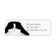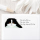 Schwarz-Weiß-Bicolor- oder Tulxedo-Perserkatze mit Aufkleber für die Rücksendeadresse des Fotos