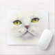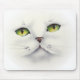 Ein weiches, nahes Portrait einer weißen persischen Katze mit auffallenden grünen Augen.