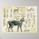 Die anatomische Katze zeigt das Skelettsystem. Seitliche Ansicht zeigt die Knochen der Katze. Die Aussicht auf die Fußknochen ist von Plantarsicht und dorsaler Seite. Das Poster ist mit Beschreibungen beschriftet.