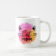 Niedliche Kaffee-Tasse für jeden Katzenliebhaber mit der Formulierung "Katzenmutter" in modernen, schwarzen Schriftzeichen über einem farbenfrohen Aquarell-Hintergrund und dekoriert mit hübschen Katzenohren und bezaubernden Whiskers.
