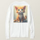 Langärmeliger T - Shirt mit einer niedlichen Katze zeichnend.