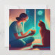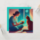 Eine Frau sitzt auf dem Boden und hält eine Kerze in der Hand, und eine Katze sitzt ihr gegenüber. Zusammen haben sie eine geheime, spirituelle Verbindung, als wäre die Katze ihr Therapeut. Dieses skurrile und humorvolle Fantasy-Kunstwerk, von Lumirala und Magic Media AI kreiert, fängt die einzigartige Verbindung zwischen der Frau und ihrem Freund in der Stille ein. Diese in verschiedenen Größen erhältliche Flachkarte eignet sich hervorragend, um Ihrer Botschaft eine Touch von Zauber und Spaß hinzuzufügen. Sie ist eine ideale Karte für Katzenliebhaber, Kunstliebhaber und alle, die die mystischen und magischen Aspekte des Lebens schätzen.