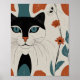 schwarz-weiße Katze mit blauen Augen, umgeben von bunten Blume.