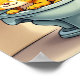 Hübscher Cartoon zeichnend eine gelbe Katze mit großen blauen Augen in einer Toilette