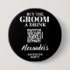 Schwarz-Weiß-Taste personalisiert mit dem Namen des Bräutigams und QR-Code auf ein Venmo-Konto, um ihm ein Getränk zu kaufen. Große Bachelor Party oder Typ Wochenende-Button für alle im Stamm zu tragen. PASSENDE Artikel in unserer Sammlung.