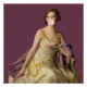 Pop Kunstwerk eines Remix Vintagen Gemäldes einer Frau in gelb bräunen ein rosa Kaugummi mit goldenem Muster Hintergrund.