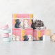 Eine fröhliche Gruppe von Katzen und Mäusen wird vor einem lebhaften rosa Hintergrund mit Herzmotiven im kawaii-Stil zusammengeführt