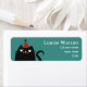 Niedlich, lustig, Cartoon, kawaii schwarze Katze mit Party, das farbenfrohe Rücksendeetikett für Kinder zum Geburtstag.