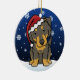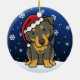 Niedliche schwarze und tan englische Schäfer-Weihnachtsverzierung, gezeichnet in kawaii Cartoon! Diese entzückende Hundezucht trägt eine rote Weihnachtsmannmütze, und Schneeflocken fallen ganz um ihn. Absolut süß, perfekt für den des Hundebaum liebhabers Weihnachts!