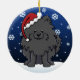 Niedliche schwarze Spitz-Weihnachtsverzierung, gezeichnet in kawaii Cartoon! Diese entzückende Hundezucht trägt eine rote Weihnachtsmannmütze, und Schneeflocken fallen ganz um ihn. Absolut entzückend, perfekt für den des Hundebaum liebhabers Weihnachts!
