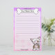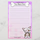 Buntes Kawaii chinesisches Briefpapier mit Haube mit einer Cartoonhundezucht in der unteren rechten Ecke. Der Spitzenteil kann mit Ihrem Namen innerhalb des großen Hündchenknochens personalisiert sofort sein. Der Grenz- und Papierhintergrund sind- rosa und gefärbt Lila. Unbehaarte Hundezucht.