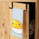 Ein entzückendes glückliches kawaii Ei auf einem Geschirrtuch. Niedlich für die Küche!