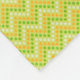 Drei glückliche Erbsen in einer Hülse mit einem bunten Zickzack-Tupfenhintergrund.