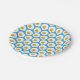 Ein wiederholtes Muster frittierter Eier, sonnige Seite oben auf blauem Hintergrund.